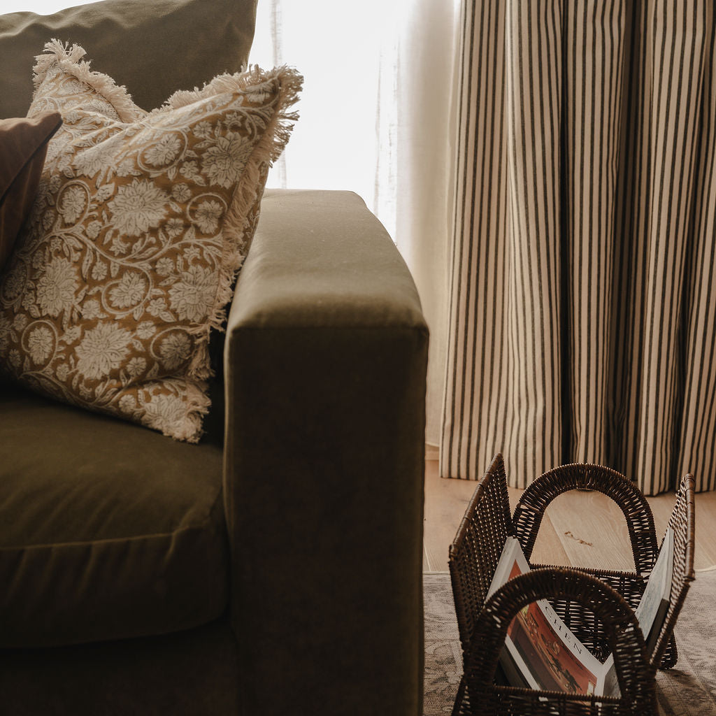 Inspired by classic block printing techniques, this cushion cover blends modern farmhouse charm with bohemian sophistication, making it a versatile piece for sofas, armchairs, or bedding. Its neutral tone complements a wide range of palettes, from minimalist and Scandi-inspired spaces to rustic and Studio McGee-style homes.
