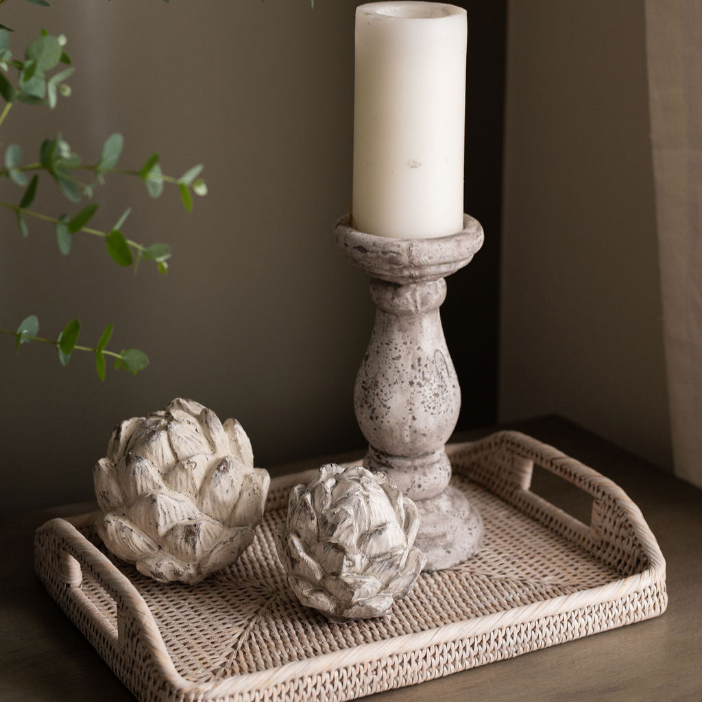 Gorgeous decorative artichoke in a gorgeous stoneware, Deep grooves decorate the ornament, mimicking the florets and stem of a real artichoke.
