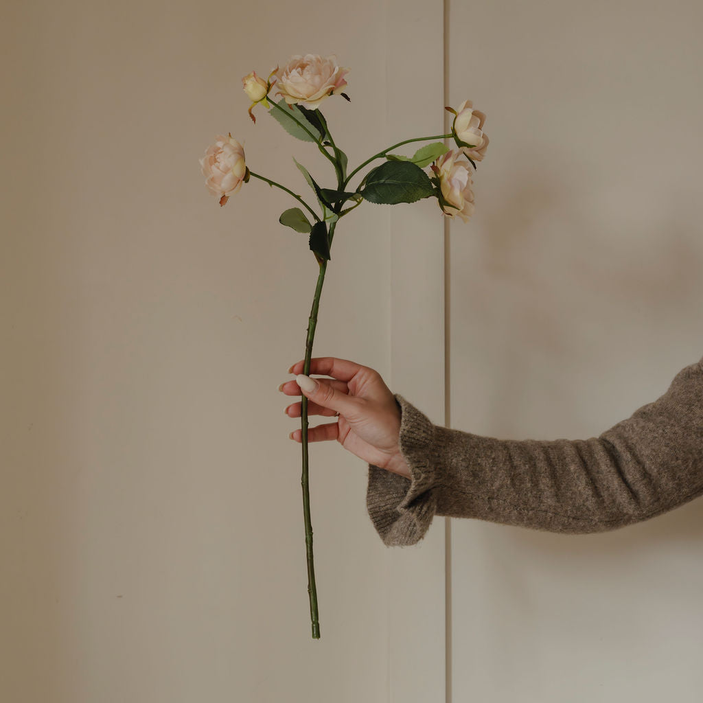 Add soft romance and timeless elegance to your floral styling with the Regent Pale Pink Rose with Leaves — a beautifully detailed artificial rose stem designed to capture the delicate beauty of a freshly bloomed garden rose.