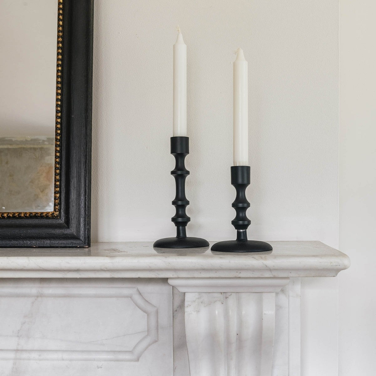 Set of 2 Black Aluminium Candle Sticks