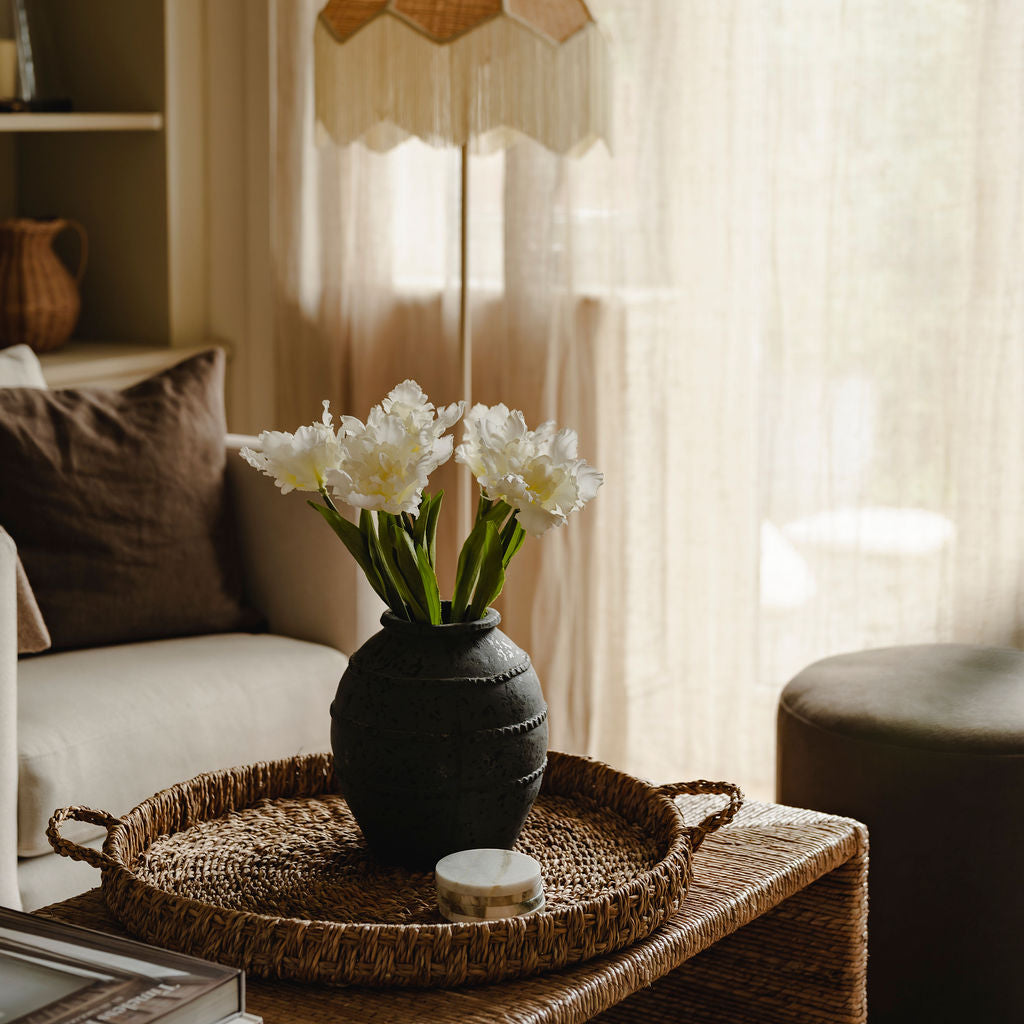 Perfect for neutral home décor, modern farmhouse styling, and Scandi-inspired interiors, this elegant white artificial tulip looks stunning in a vase on a dining table, bedside, entryway console, or layered into a larger faux floral arrangement.
